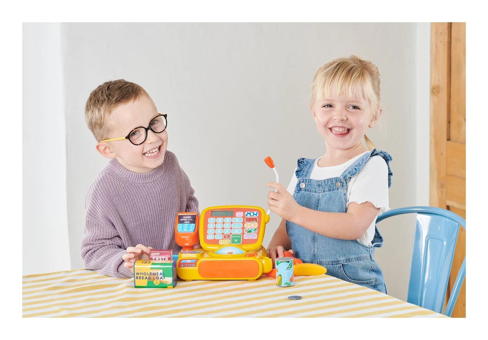Ring up the fun with the Toy Cash Register! Whether playing shopkeeper or customer, this interactive till brings a realistic shopping experience to life. Packed with exciting features, little ones can use the working calculator for accurate transactions, announce special offers through the play microphone, and scan items just like at a real store.