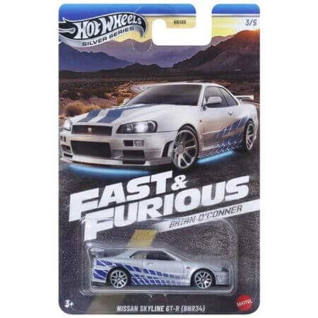 Bring home the excitement of Fast & Furious™ with these collectible cars featuring Brian O'Conner's legendary rides. Perfect for display or action-packed play, these Hot Wheels® models are essential for any fan or collector.