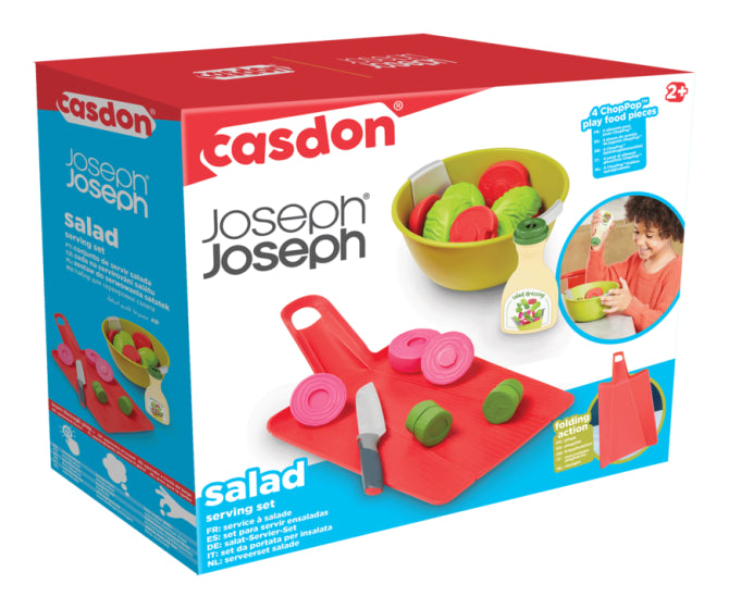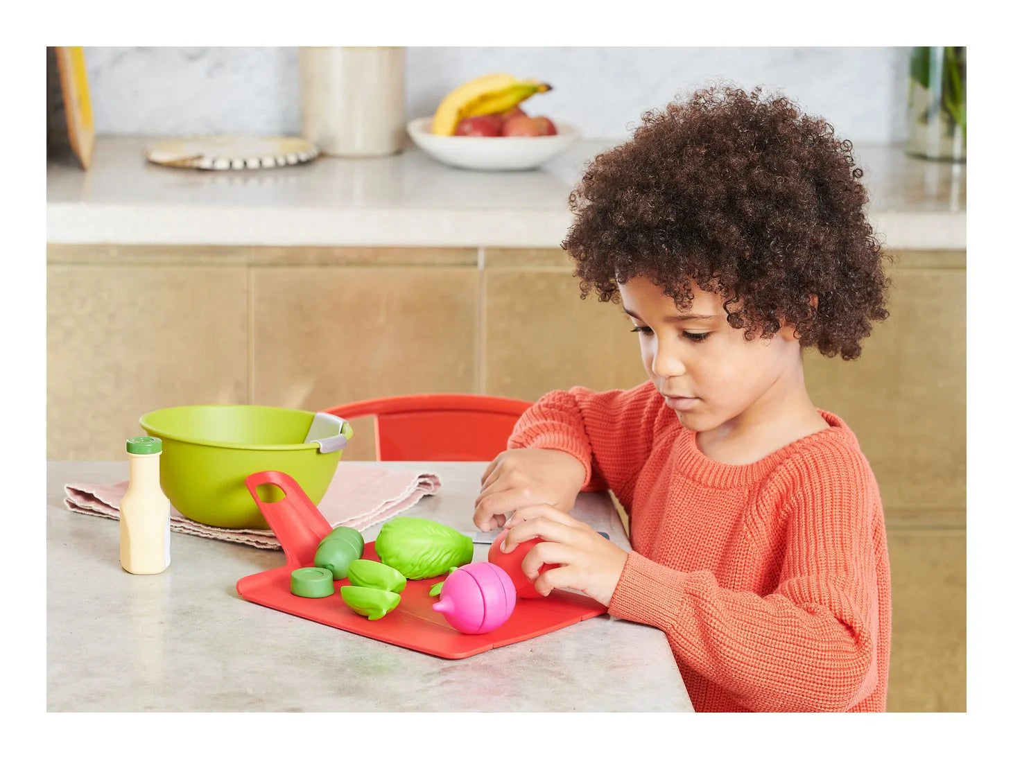 Introduce your little one to the joy of healthy eating with the Joseph Salad Serving Set! Designed to inspire imaginative play, this interactive set includes everything needed to "chop," toss, and serve the perfect pretend salad. Featuring a mini version of our signature Chop2Pot cutting mat and an Elevate knife, slicing up play veggies has never been more fun. Once prepped, kids can transfer their ingredients into the Uno salad bowl and give it a good mix.