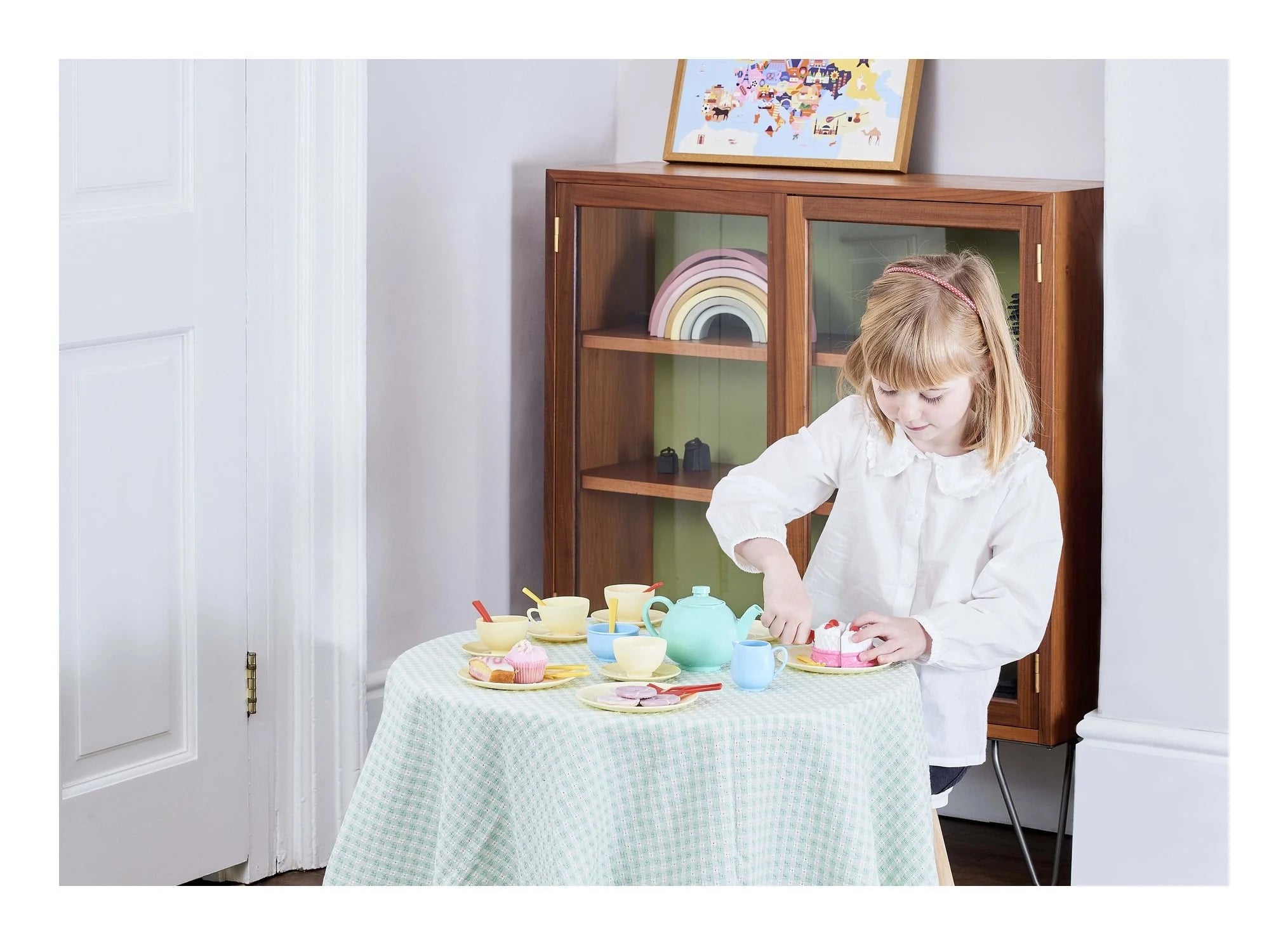 Encouraging imaginative play and social skills, this set allows children to plan, serve, and enjoy tea parties with friends, dolls, or stuffed animals. The play cake even splits into quarters, helping little ones develop an early understanding of fractions and sharing.