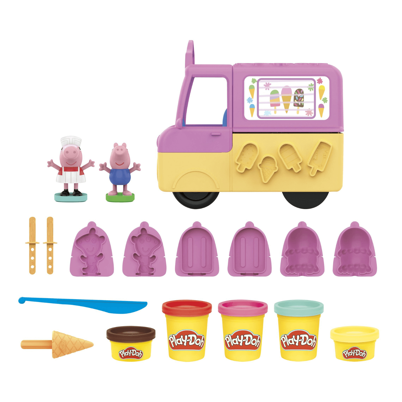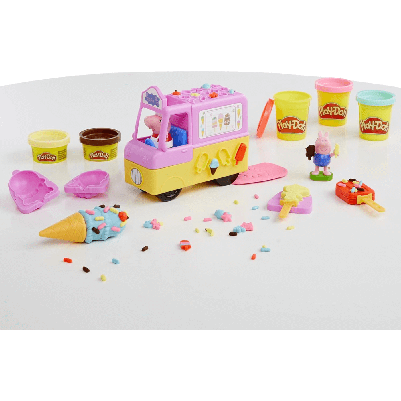 Peppa Pig and her brother George are ready to serve up a scoop of fun with the Peppa Pig Ice Cream Playset! Designed for kids aged 3 and up, this delightful arts and crafts set lets young fans of the show get creative while making pretend frozen treats. Whether it’s an ice cream cone, ice pop, or teddy bear-shaped treat, there’s no limit to the imaginative creations kids can make with Peppa’s Ice Cream Truck and fun Play-Doh moulds.
