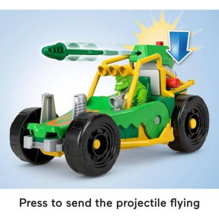 Bring Gotham City adventures to life with the Imaginext® DC Super Friends™ Killer Croc Figure & Buggy Toy Car set! Young crime-fighters can imagine thrilling battles as Killer Croc cruises in his buggy, ready to cause chaos. Press the Power Pad to activate the buggy’s chomping hood action, then load and launch the projectile from the rear launcher to take on Batman and his allies. This exciting set encourages creative storytelling and action-packed pretend play for preschoolers.