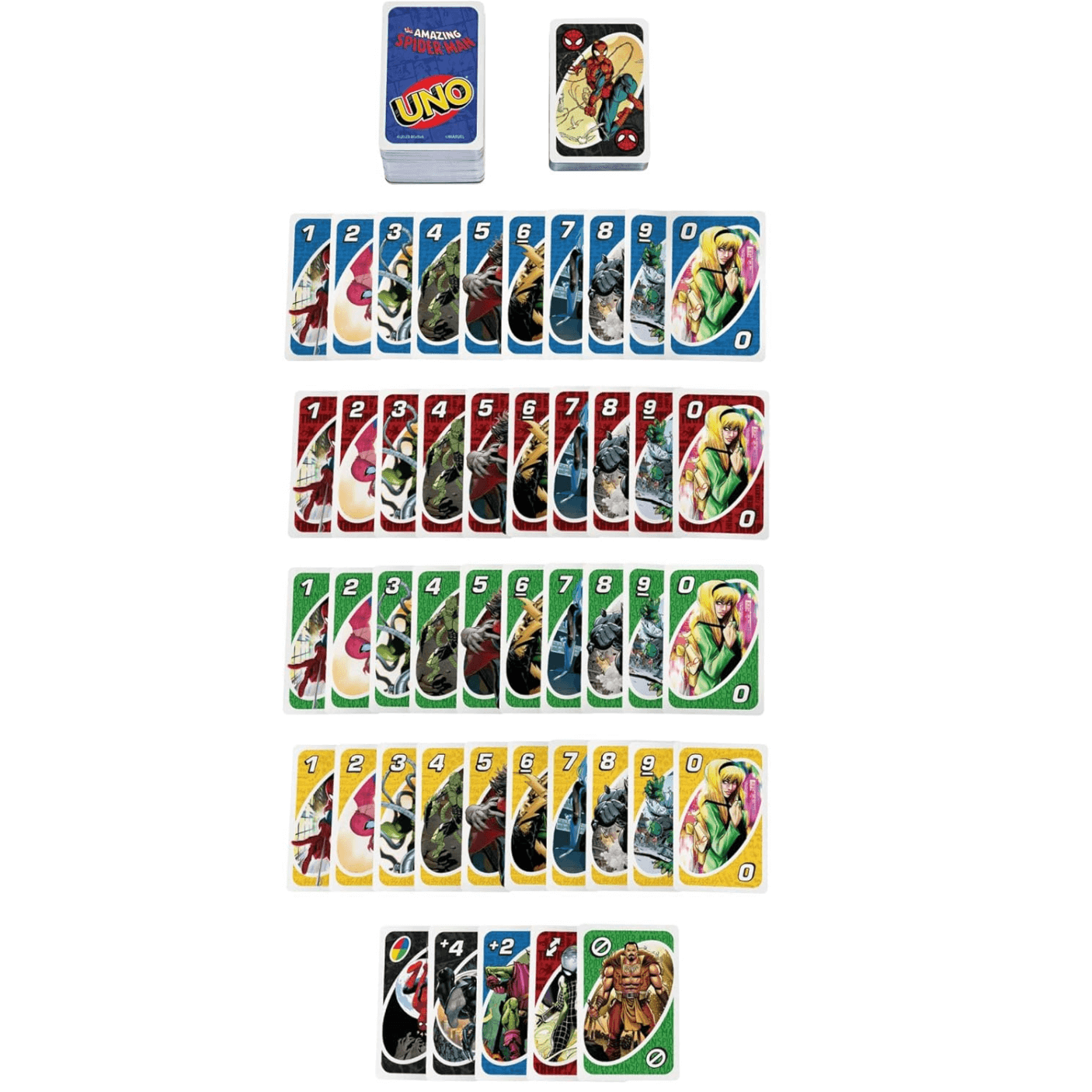 Swing into action with the UNO Spiderman card game! This exciting version of the classic UNO game brings together the thrill of Spider-Man and the fast-paced, fun-filled gameplay you love. Featuring graphics inspired by The Amazing Spider-Man, players will enjoy matching colors, numbers, and using special rules to outsmart their opponents.