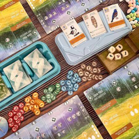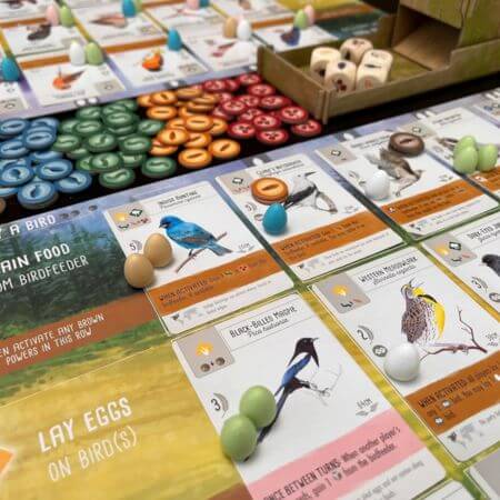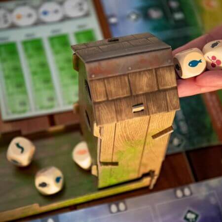 🎲 Strategic Engine Building – Gain food tokens by rolling custom dice in a beautifully designed birdfeeder dice tower.