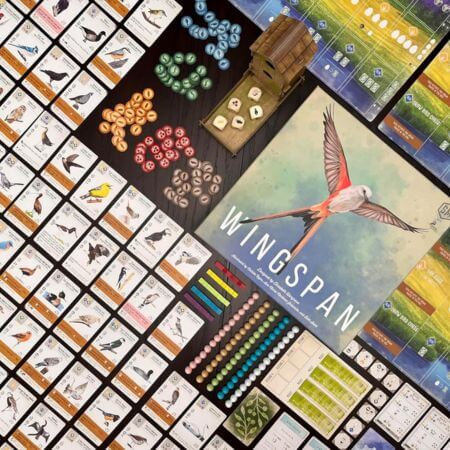 Wingspan is a medium-weight, engine-building board game designed by Elizabeth Hargrave and published by Stonemaier Games. In this award-winning strategy game, players take on the role of bird enthusiasts—researchers, bird watchers, ornithologists, and collectors—competing to attract the most remarkable birds to their wildlife preserves.