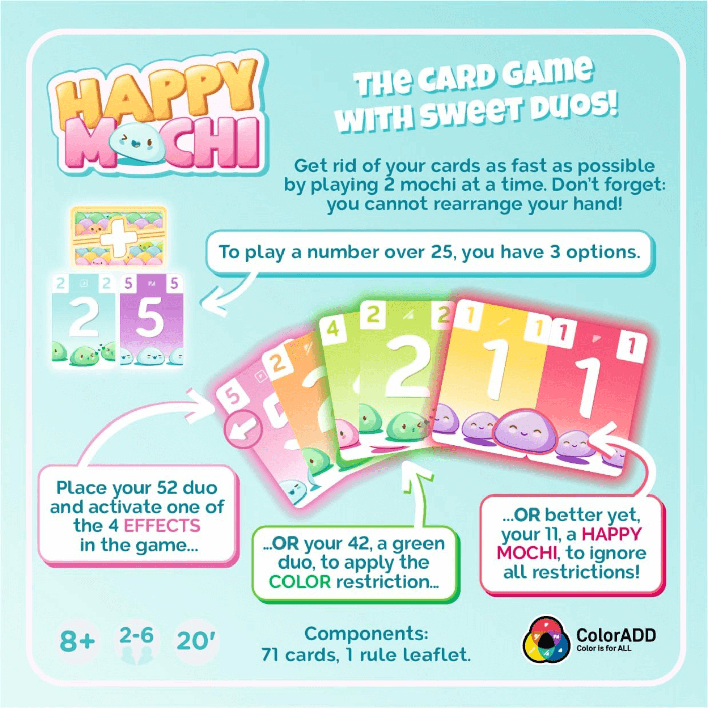 Happy Mochi is the perfect blend of strategy, speed, and fun, making it a must-have card game for your collection. Get ready to pair up mochi, create a HAPPY MOCHI, and keep your opponents guessing in this sweet and strategic game!