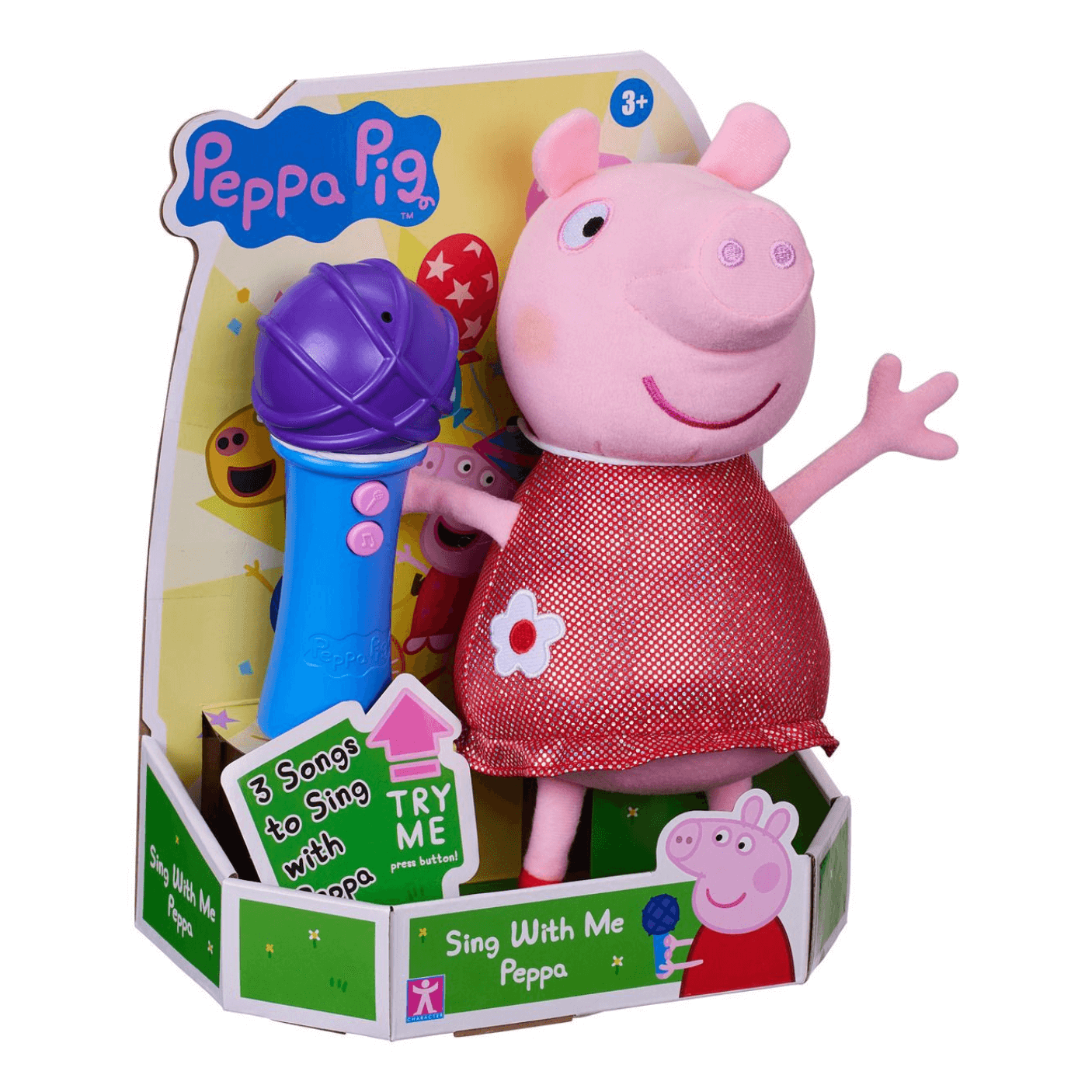 Get ready to sing, play, and party with Sing With Me Peppa! This adorable and cuddly Peppa Pig plush comes dressed in her sparkly red party dress and features an interactive microphone for endless musical fun.